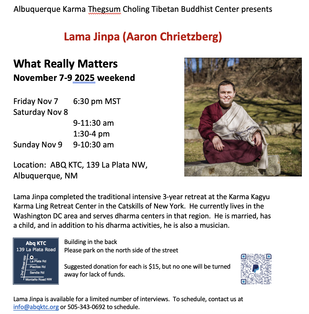Here is a "last minute" reminder of Lama Jinpa's visit and teaching here