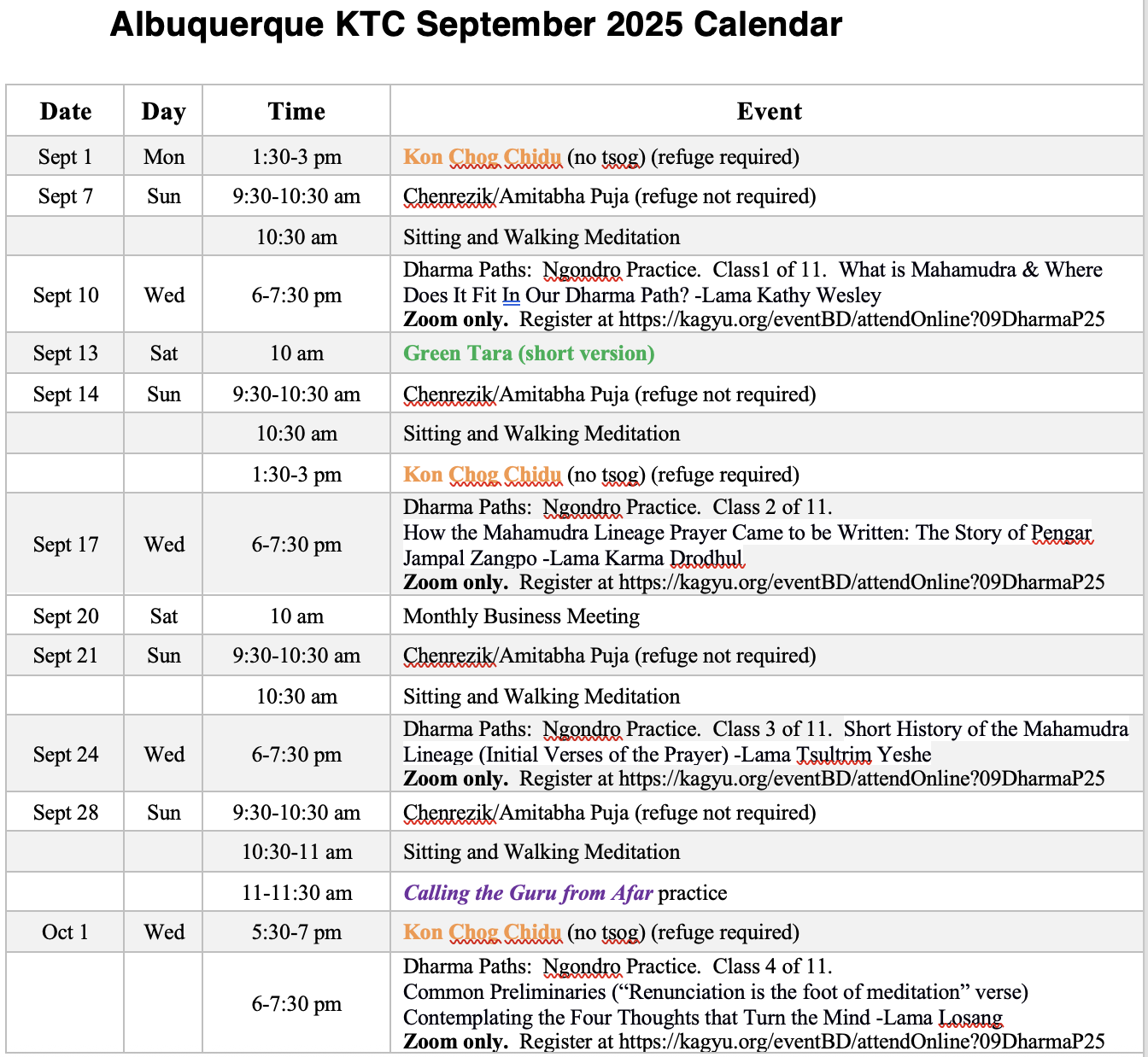 as our regular local Albuquerque practices for the month of September.